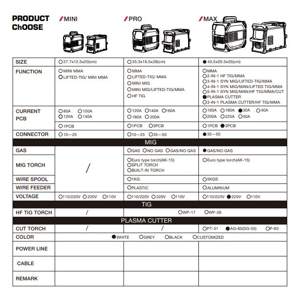 - The digital display screen features concealed functions, all displayed in a left-aligned column. Additionally, it automatically assists in matching electrode diameter based on the current, preventing users from overloading the machine.